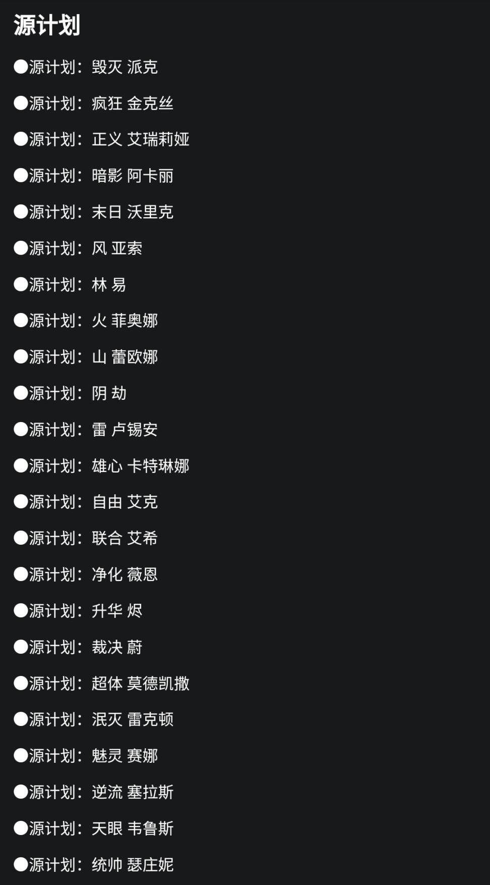 因为皮肤太多了,直接截图看起来还顺眼点。源计划全系列半价,作为一个大系列,虽然中间有几款皮肤略显敷衍,整体的质量保持的还是不错的。现在除了最新的铁男和鳄鱼这一代,其他几代的源计划也能经常白嫖到了,在幸运商店里三折出现的概率也很大,半价就不用太考虑了。