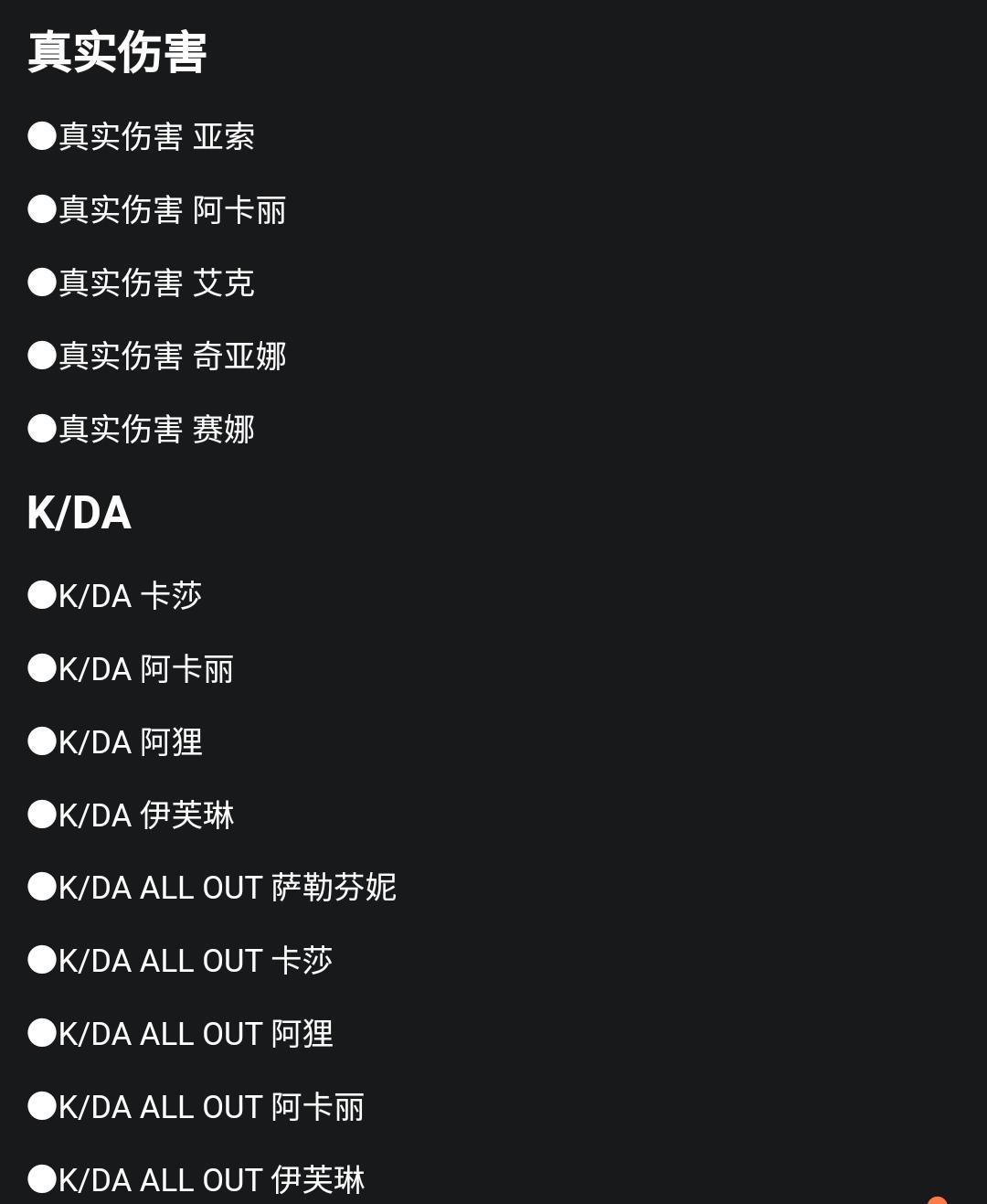 至于K/DA系列,虽然有很多至臻在手,但二代的阿卡丽,卡莎,一代的伊芙琳也都是比较好用的皮肤,终极皮肤萨勒芬妮视情况而定,也可以把她当成三个T2组合。
