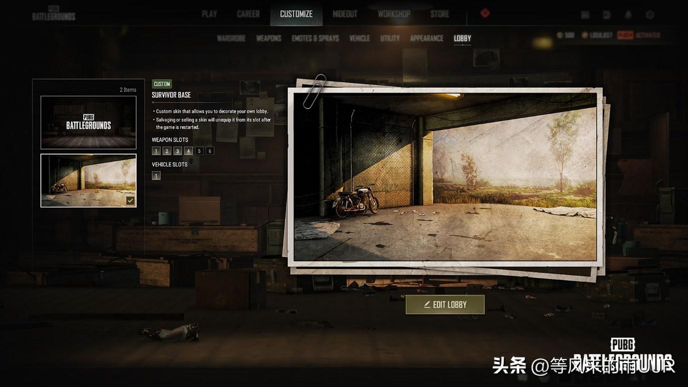 大厅自定义功能只有豪华版账号才能使用。如果您还不是豪华版用户的话,不妨就趁这个机会升级账号,享受更多豪华版特权吧!※ 豪华版账号:免费版用户可以花费12.99美元将账号升级为豪华版。升级后的账号可以会获得自定义比赛开设权限、额外生存熟练度经验值等多种PUBG特权和功能。系统会自动将自定义大厅所需的新款道具“生存者基地”发放给所有玩家,届时玩家们的通知中心里会收到道具获得通知。