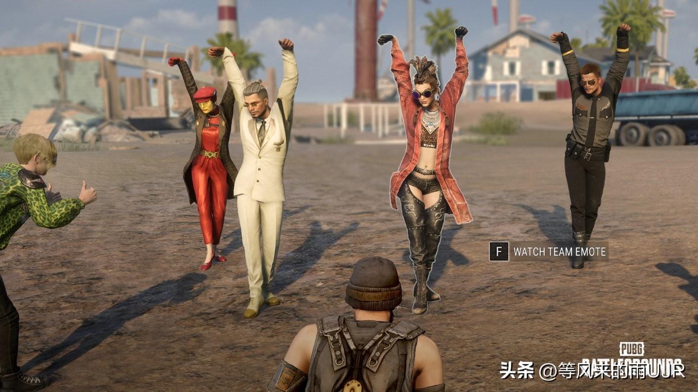 观看团队表情今后玩家可以观看其他队伍玩家的表情。“观看团队表情”功能只能对可以无限循环的团队表情使用,该功能可以让玩家间接地加入到其他队友或玩家的表情中。开始观看后,玩家将会反复做出类似观看的动作,并可以听到正在观看的表情所附带的音乐。观看团队表情时,玩家需要注视其他队友或玩家并按下互动键。“观看团队表情”功能最多允许10人一起观看其他玩家的表情。