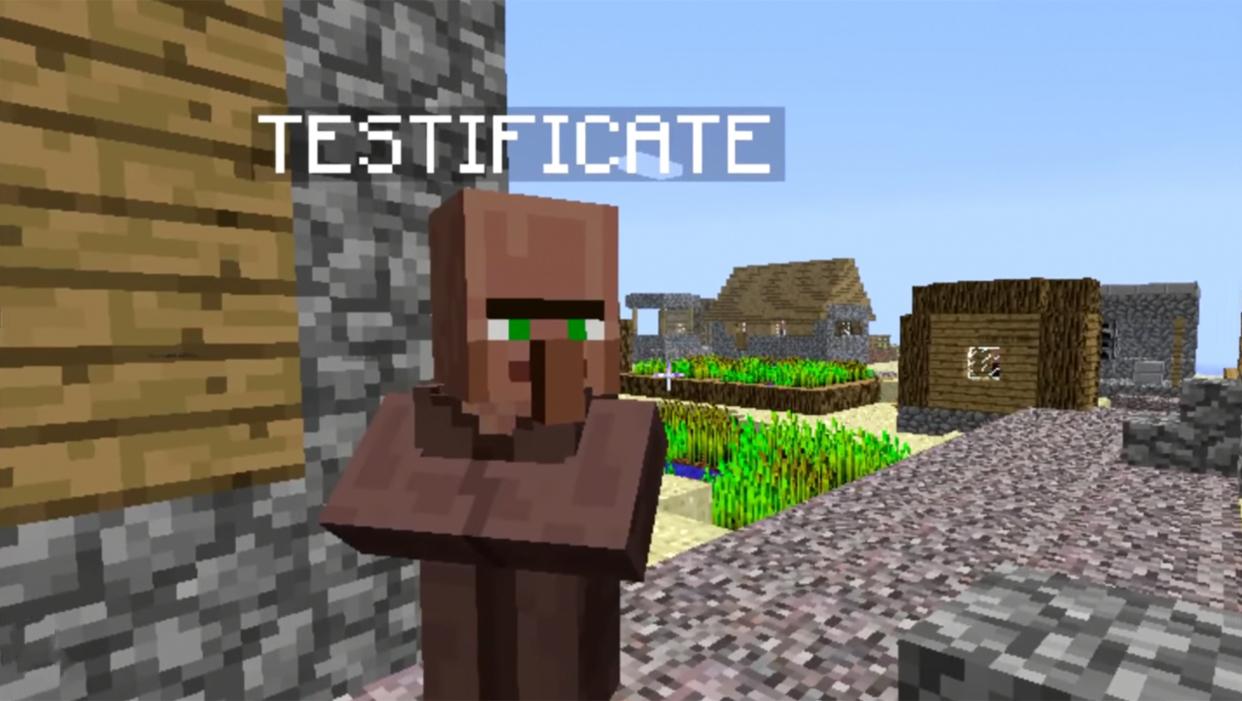 3、村民刚被加入Minecraft的时候,头上都顶着一个命名叫作“TESTIFICATE”,意思是测试版生物。这一特性只短暂地维持了两个版本。