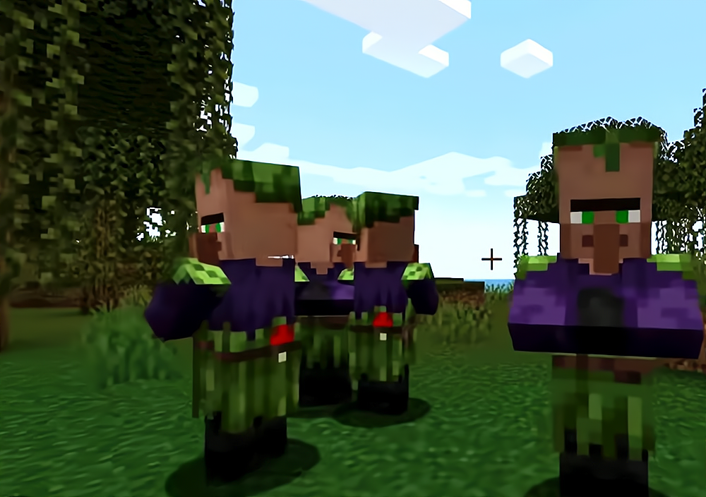 34、僵尸村民最早加入mc的时候,皮肤类似僵尸而不是村民,身上的衣服是僵尸的蓝短袖,而不是村民的袍子。