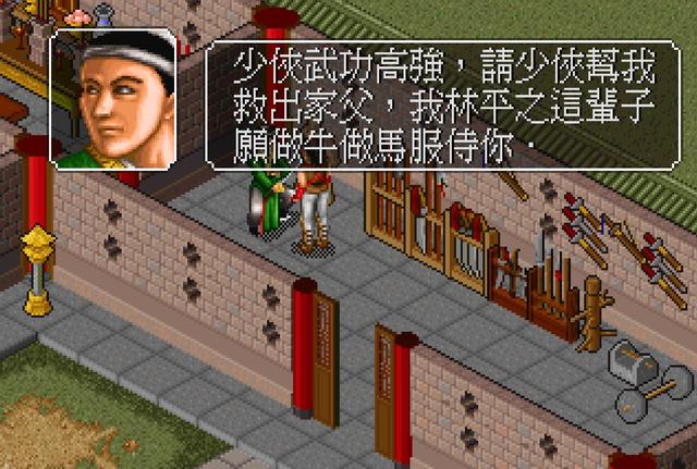 在场景的左上角,会发现一个名为侯人雄的NPC,因为贪生怕死,将林家有剑谱的秘密告知了主角。而这个信息本来是由令狐冲来传达的,不过此时剧情还没有发展到哪一款,剧情安排这家伙来走流程。