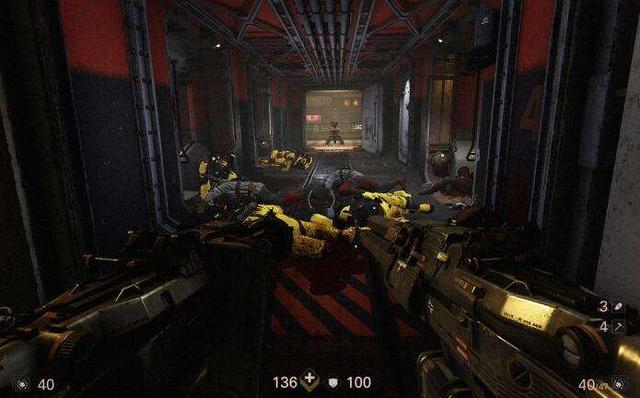 另外,在主角中弹时的反馈上,《新巨人》的表现也比较糟糕,至少比COD等大作要逊色得多:此时,主角根本没有任何硬直或者抽搐,相反,我们只能通过屏幕边缘淡淡的血色来注意到他们已经掉血,在一些较高的难度下,当玩家发现自己连续中弹时,BJ事实上已经死了。