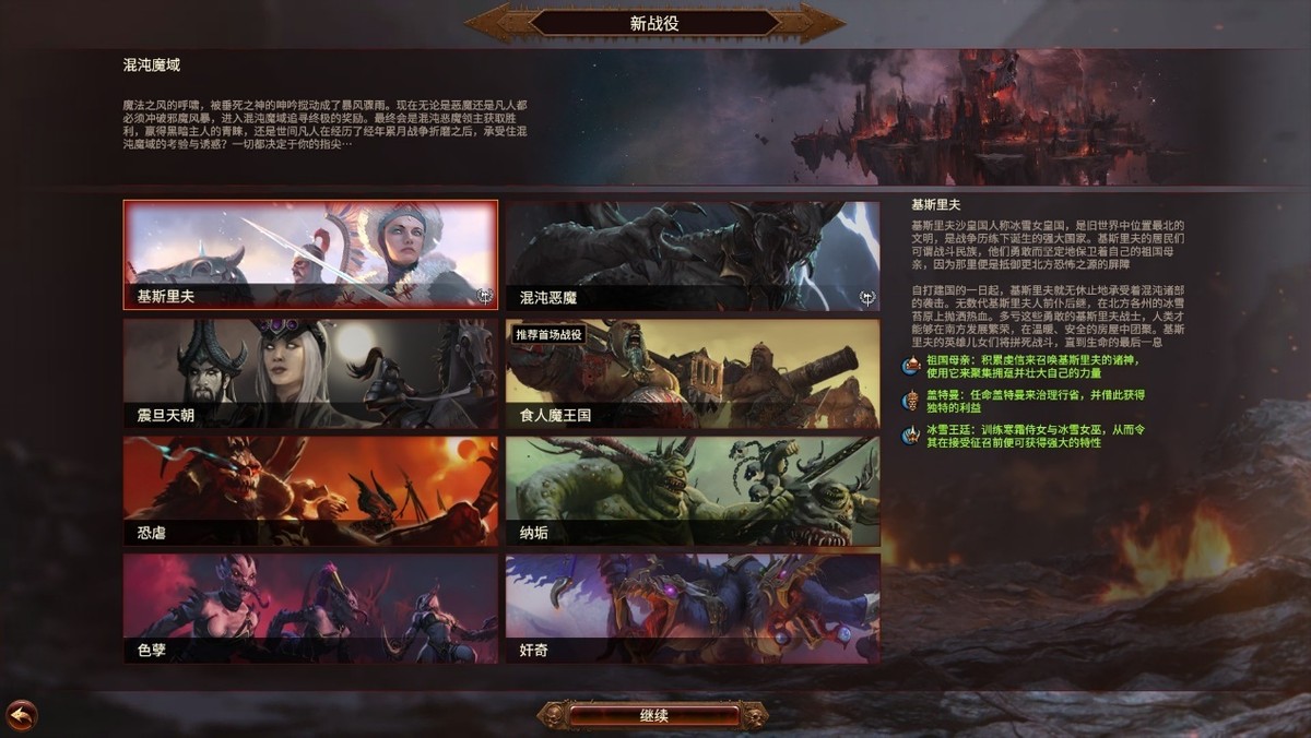 其次,本作的首发阵容,也是历代翘楚。算上预购DLC的“食人魔”,本次《全面战争:战锤3》有整整8个初始派系,其中4大混沌势力与秩序方,均有颇具特色的阵营机制。相比之下,《全面战争:战锤2》的初始阵容可以说是相当寒酸,《全面战争:战锤》更是连类似大漩涡的战役基本盘都没有。