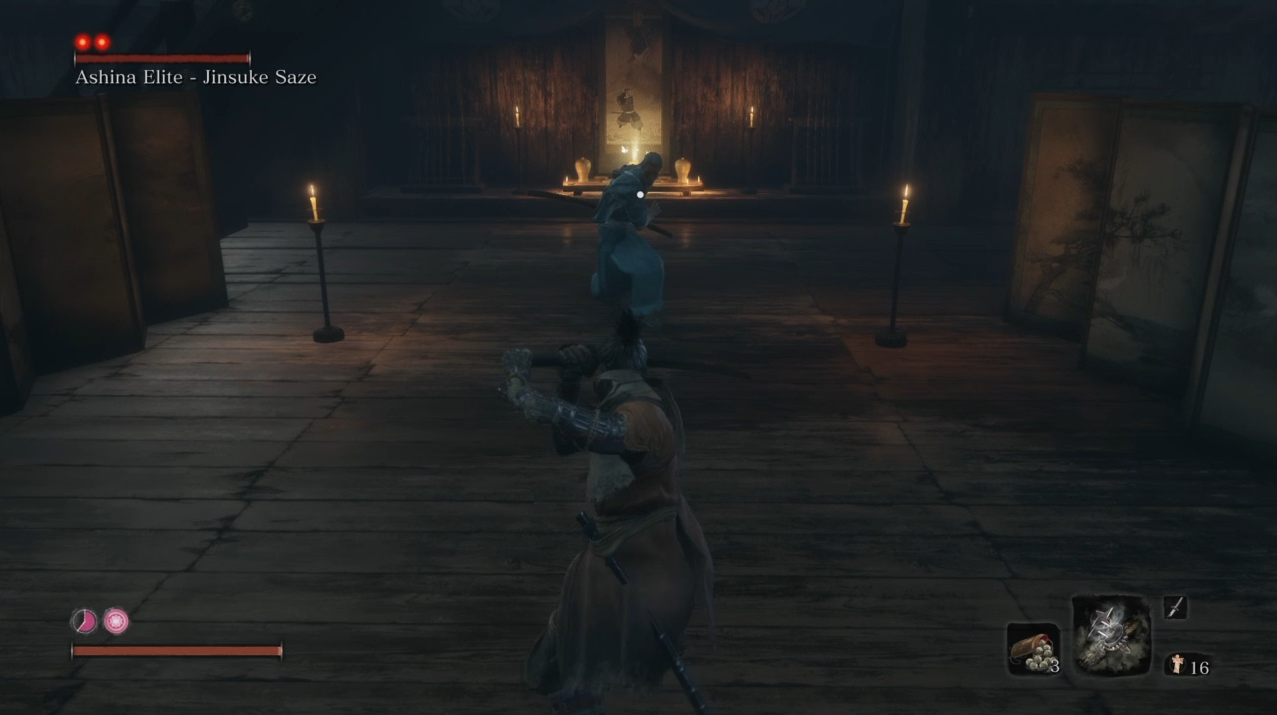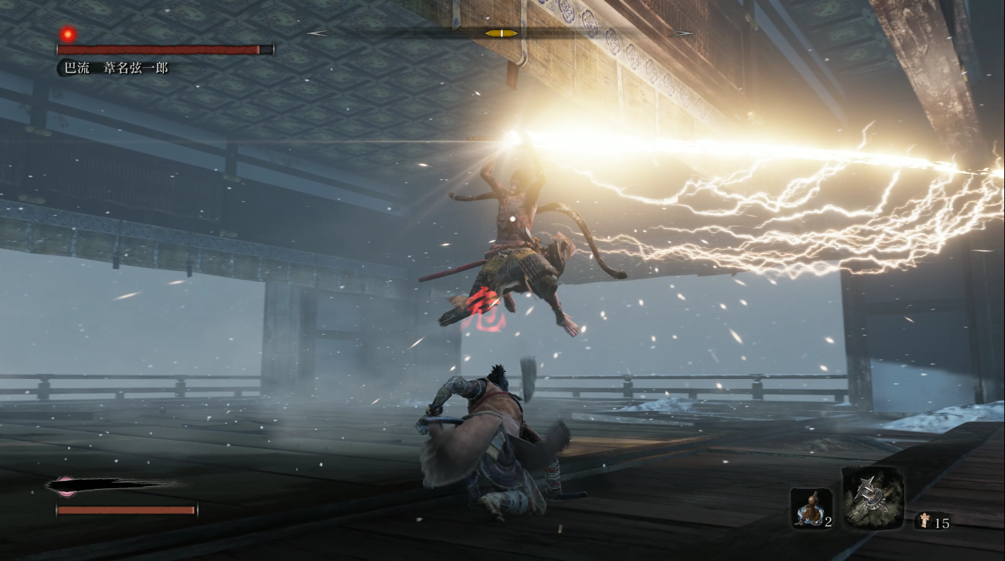 同属苇名流的达人,佐濑甚助可称的上最强的中BOSS,玩家没必要追逐他的速度,看准时机弹刀即可。