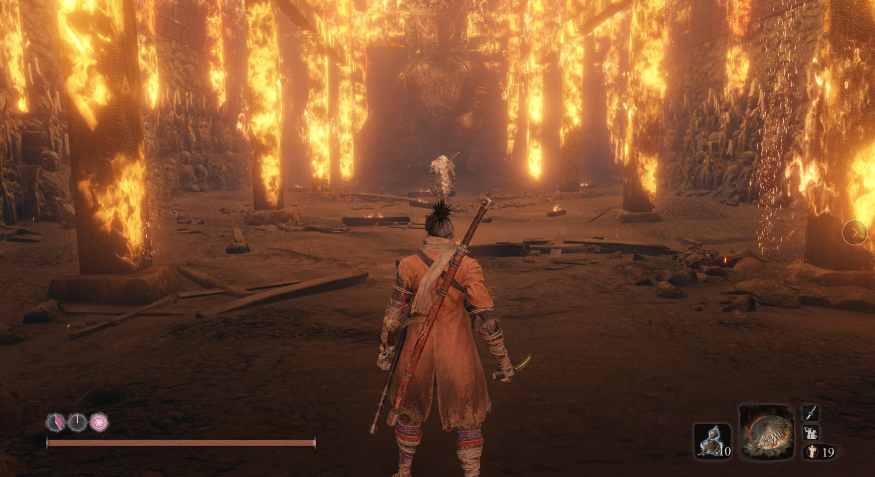 只狼boss有的莽起来更简单,永远抢先手出两刀打出对面反击后弹反,叮叮当当压制对手,例如屑一郎和幻蝶;有的怂起来更好打,靠防守蹭刀削减血线积攒架势条最后忍杀一击毙命。义父和枭两场boss战就是典型的防守蹭刀更好打的boss。