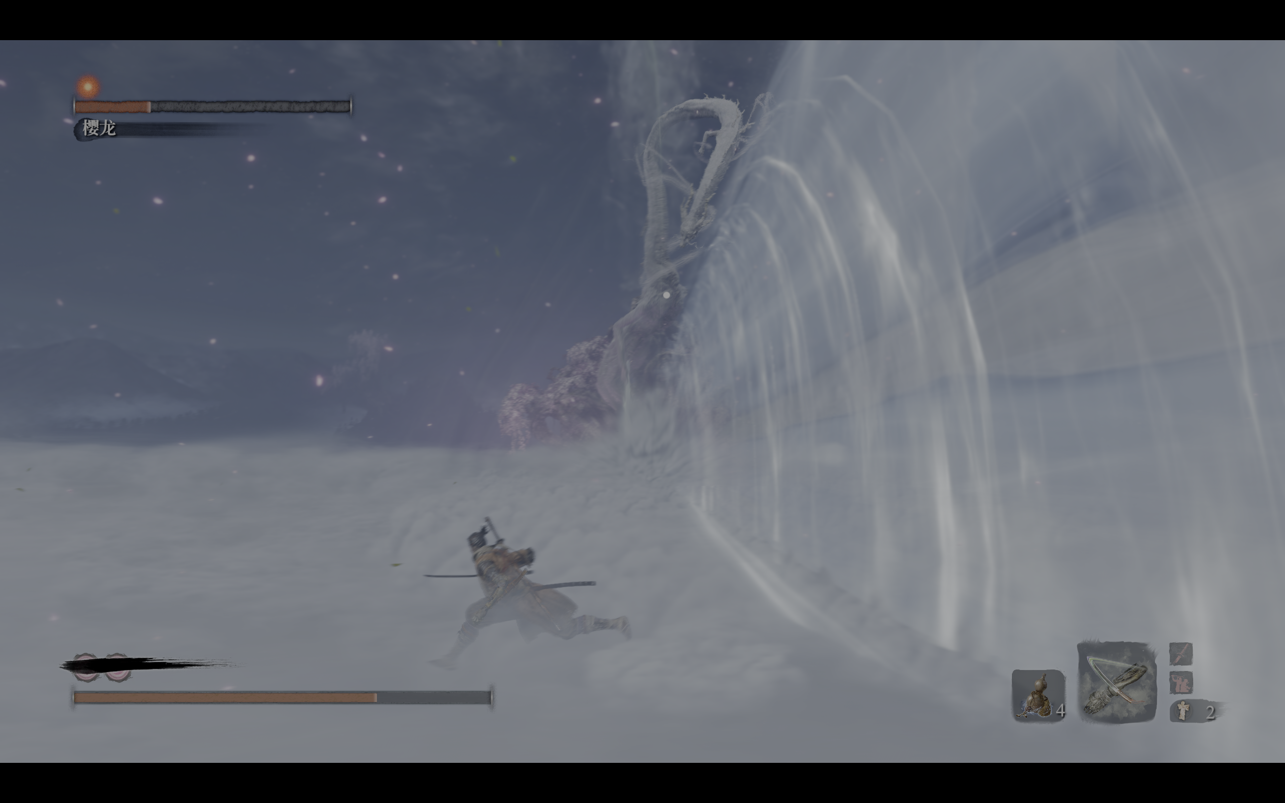 说到龙闪,其与樱龙的斩击十分相似。与樱龙的一战,是在只狼祈祷之后,方得进入神域。