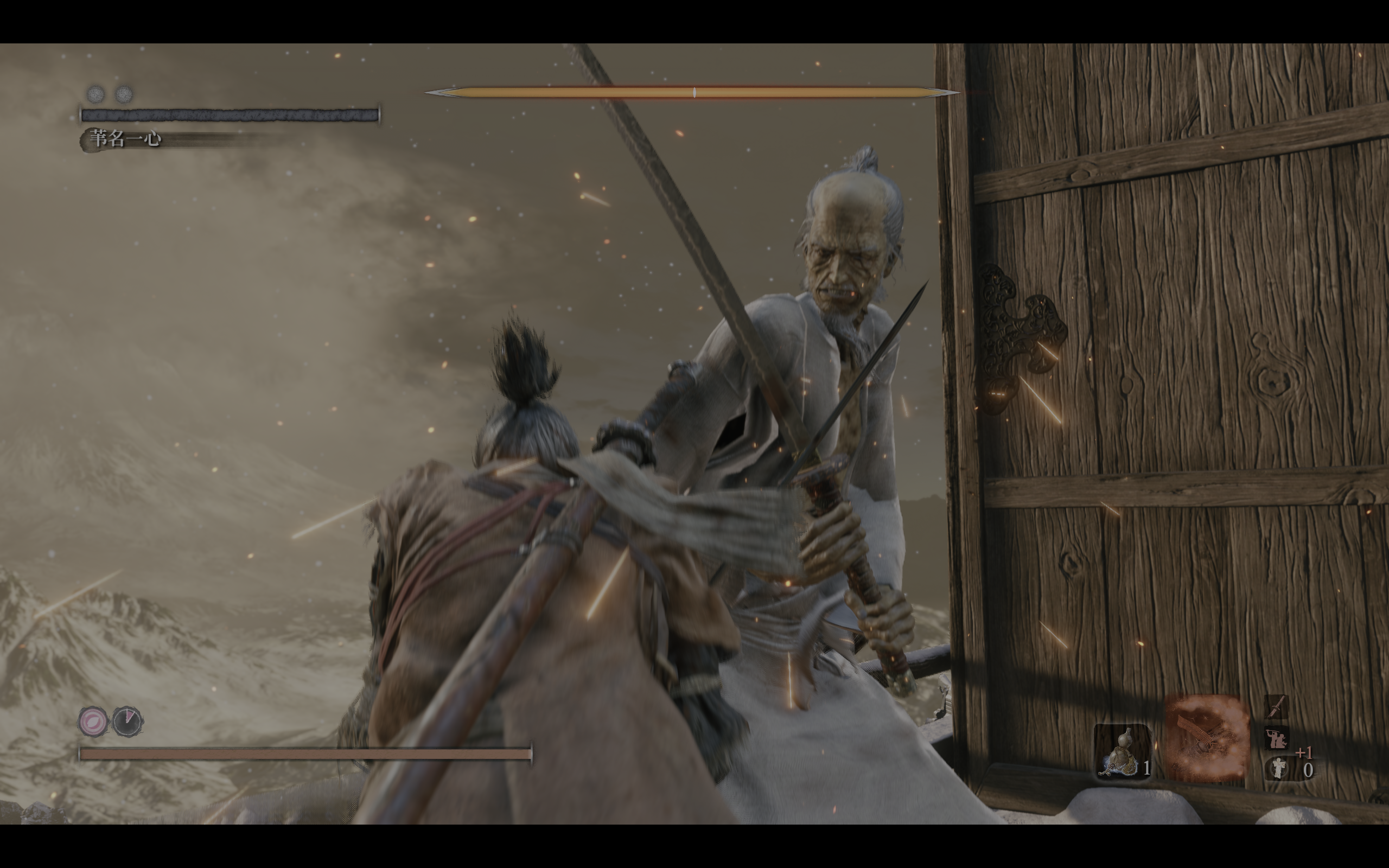 无论是壮年一心,还是老年一心,在你无法完美招架一字斩时,都会迅速吃到老爷子的二连斩。而当你回避开他的斩击时,他则会立即收招。