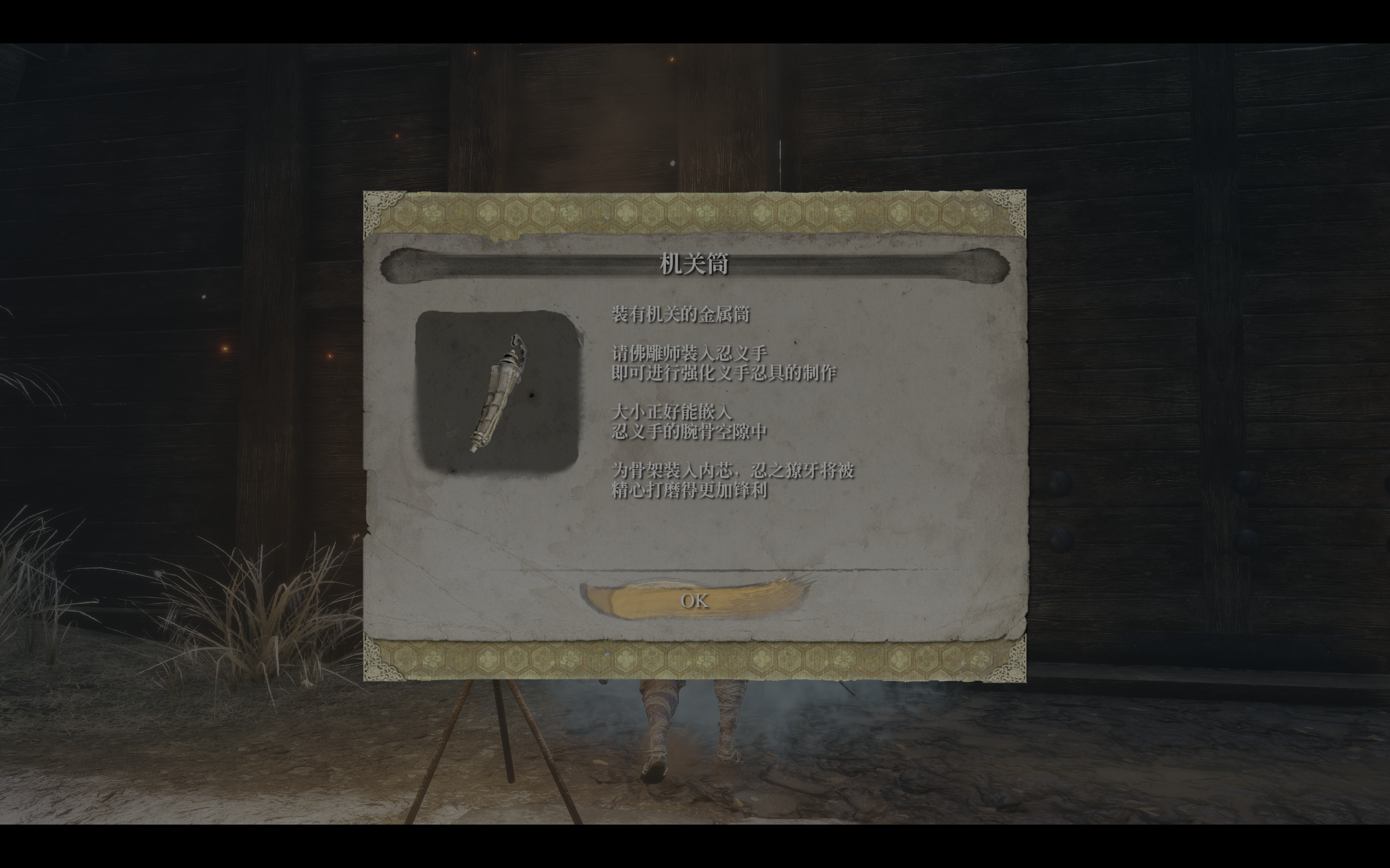 这只断掉的手臂,后被道玄制作的忍义手(即只狼使用的这个)所替代。