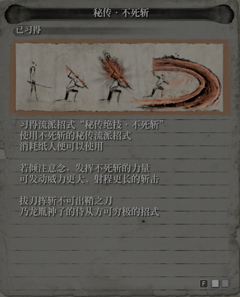 在只狼这里,无心流就是各个门派的绝学,加上不死斩,飞渡浮舟的彼此结合。
