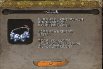 前往坐着的两个武士所在的房间,那个房间里有两个穿盔甲的武士的雕像,中间的墙上挂着一幅画,【贴墙】打开暗门,暗门里有个宝箱,打开获得【佛珠】。