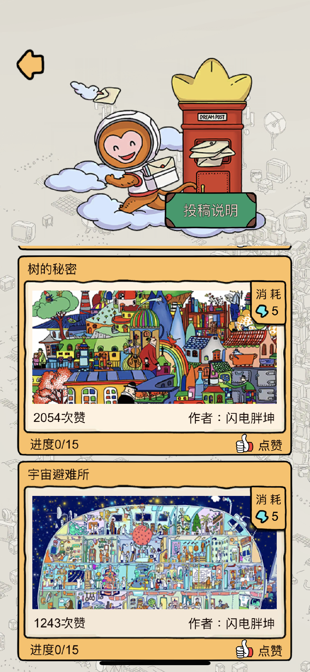居然也是这种插画风格,密密麻麻的元素,很有难度,比关卡还难些。