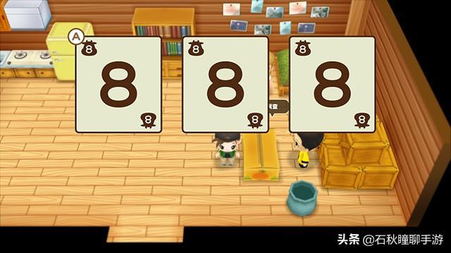 当你跟霍安的好感度达到6心以上,就可以进行猜苹果游戏了。规则很简单,霍安跟你说左中右三个苹果各叫什么名字,然后他会快速切换顺序,最后问你某个名字的苹果在哪个位置。