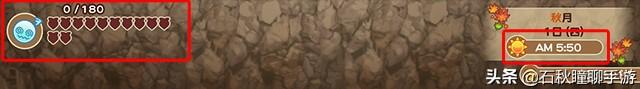 然后凌晨5:50分,进矿洞把体力耗尽,疲劳度只剩一点(如下图所示那样,出现眩晕的表情图标后,挥竿9次,这样疲劳度就达到99了)。