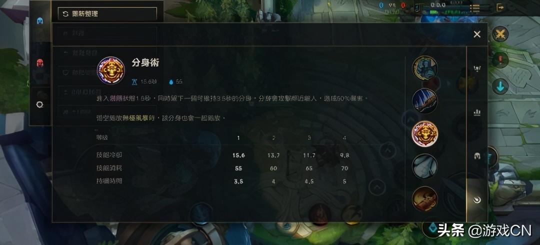 在对线期间,善于利用一技能和三技能对拼,适当时候利用二技能进行后撤。由于假身也能够释放大招,所以最好是等对面英雄攻击假身之后再一同放大招。加点方面一技能>三技能>二技能,有大加大。