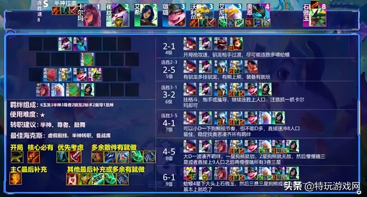 羁绊组成:6玉龙3半神3尊者2驯龙2秘术2魔导1龙神