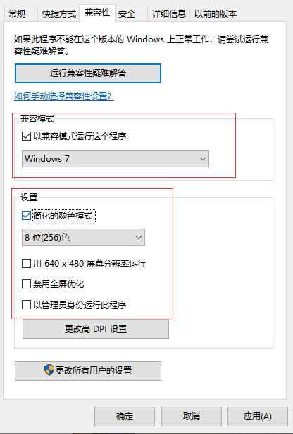 2、右击wegame,属性,兼容性,以Win7兼容运行,简化颜色模式16位,应用确定。