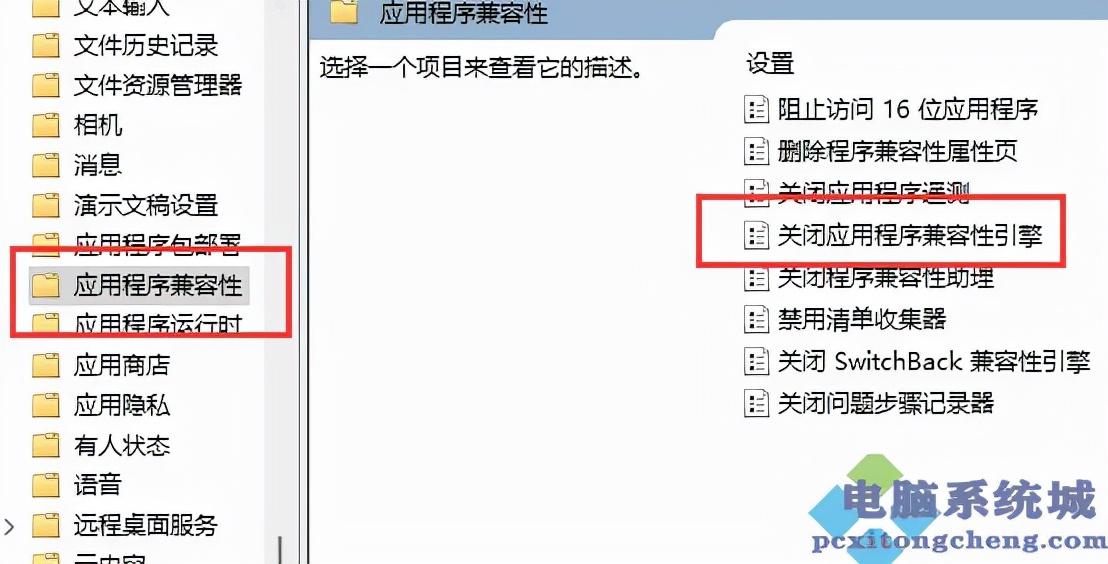 3、接着找到“应用程序兼容性”,再双击打开其中的“关闭应用程序兼容性引擎”。