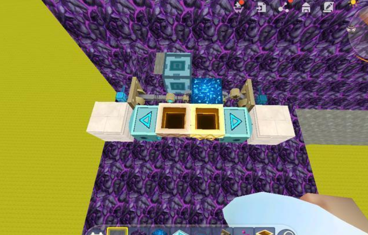 因此这最重要的道具也就是这个推杆,首先我们先堆上一排滑动方块,之后跟着在滑动方块两侧安装好推拉机械臂,之后。两边再各自接上两个漏斗,接下来在漏斗的两侧都要安装上电能比较器。最后在电能比较器上连接导电方块,连接蓝色电能线,最后接上电源,打开开关,大功告成!