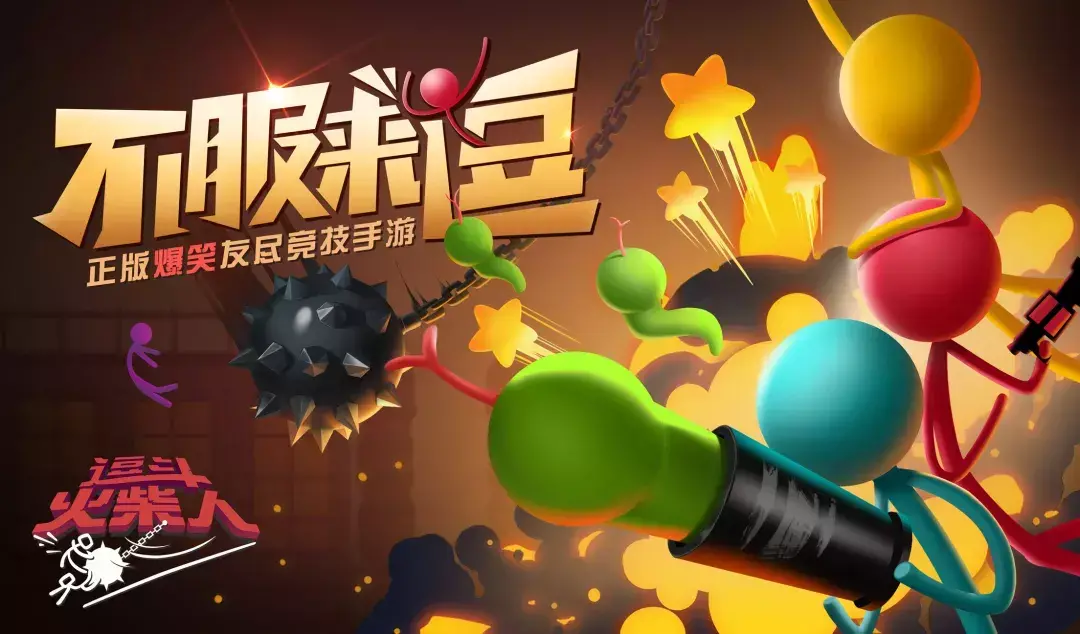 Stick Fight: The Game则配合屏幕震动、音效和物理效果,加上搞怪元素突出拳拳到肉的刺激感,在手游《逗斗火柴人》,更进行了进一步的夸张。