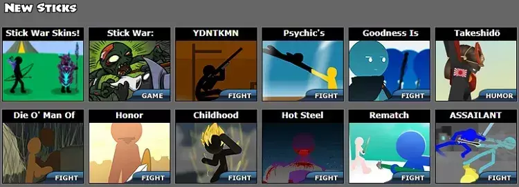 最早的火柴人游戏已经不可考,作为一种典型的涂鸦风格,火柴人多见于Flash网页游戏,是“4399”中的常客,时至今日,海外仍不乏有大量专门的火柴人Flash游戏网站,专门向粉丝提供此类产品。