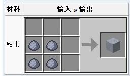 粘土可以被用来重新制作粘土块,也可以通过使用熔炉烧制成红砖,而红砖可以进一步用于制造砖块。