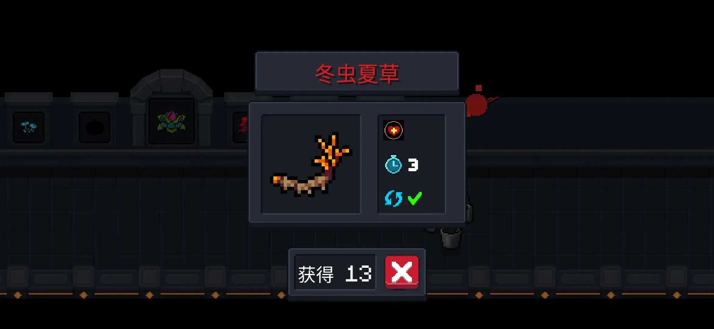 3.“冬虫夏草” 三天成熟,成熟后获得“红盾(血盾)”,每天收获一次。 可循环使用。