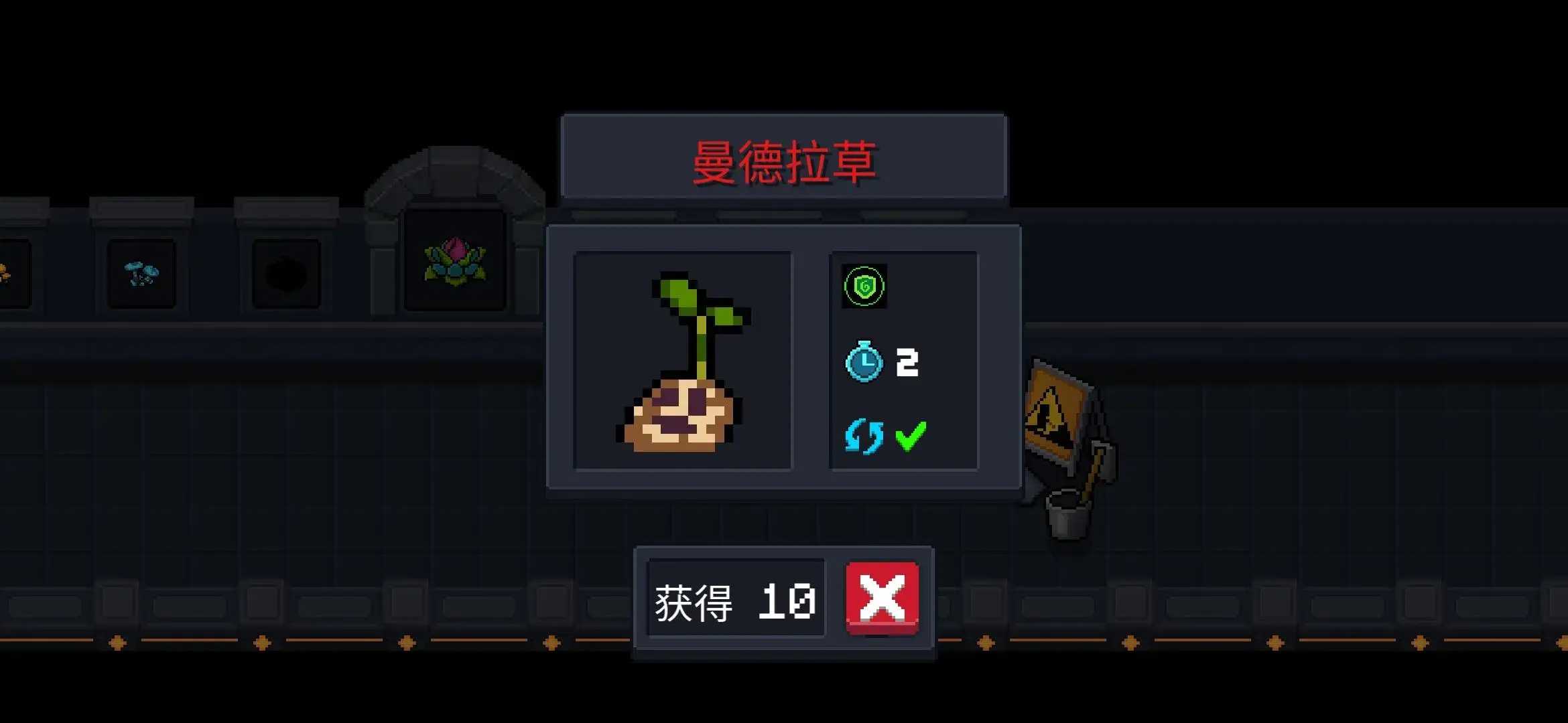 6.“黄金蘑菇” 两天成熟,成熟后获得“地牢商店价格半价”,每天收获一次。 可循环使用
