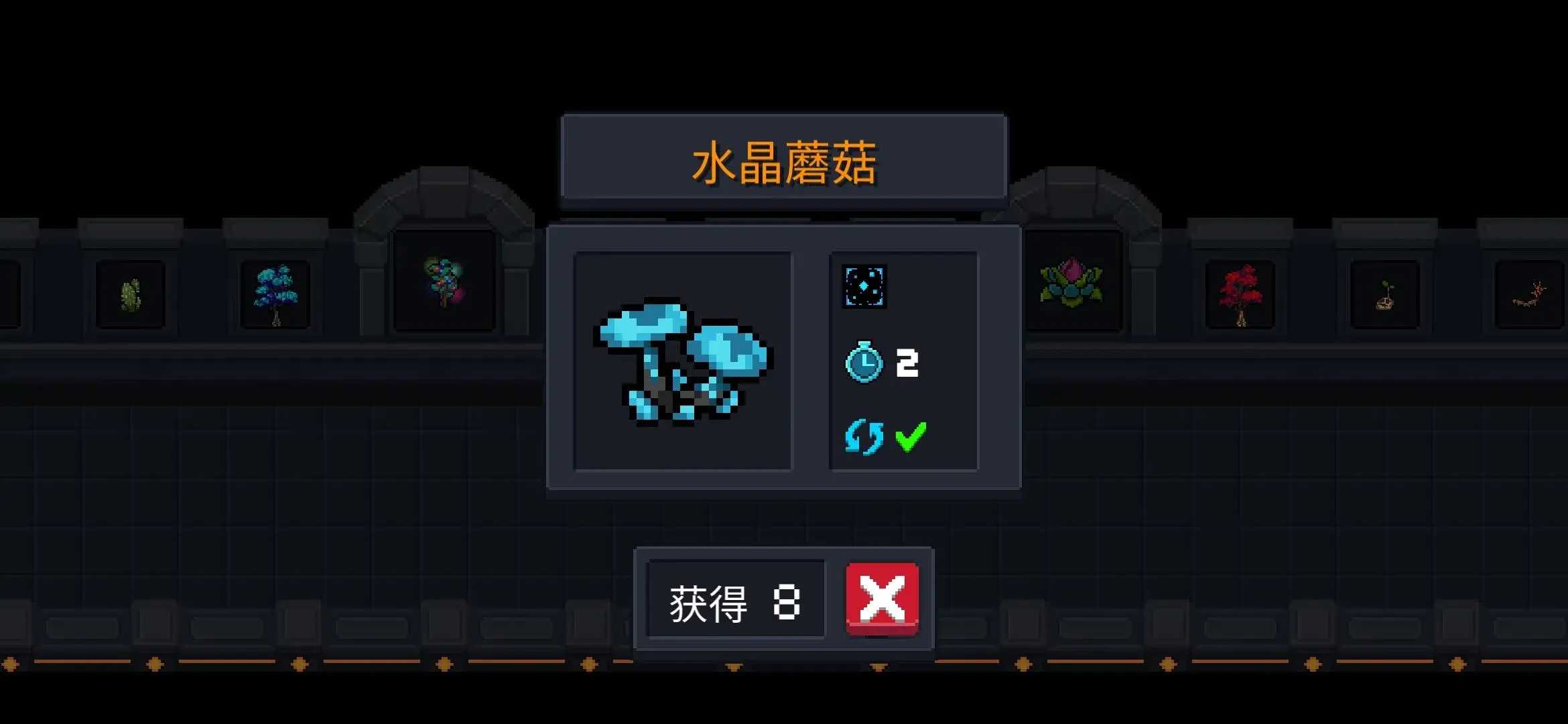 7.“水晶蘑菇” 两天成熟,成熟后获得“关卡结束后宝石增多”,每天收获一次。 可循环使用