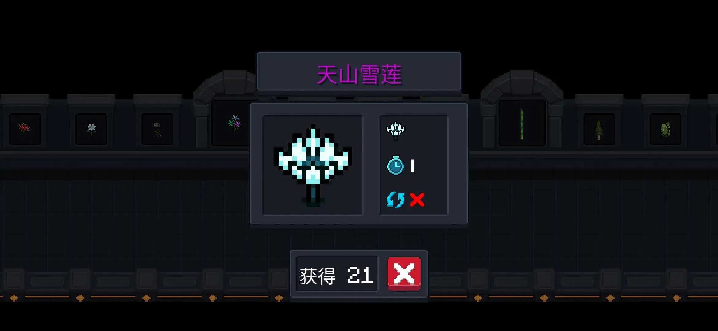 11.“天山雪莲” 一天成熟,成熟后获得“增加血量上限”,可收获一次。 不可循环使用