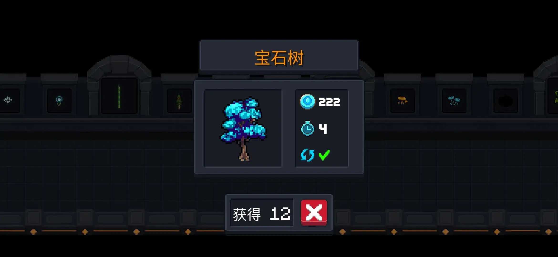 17.“宝石树” 四天成熟,成熟后获得“222个宝石”,每天收获一次。 可循环使用