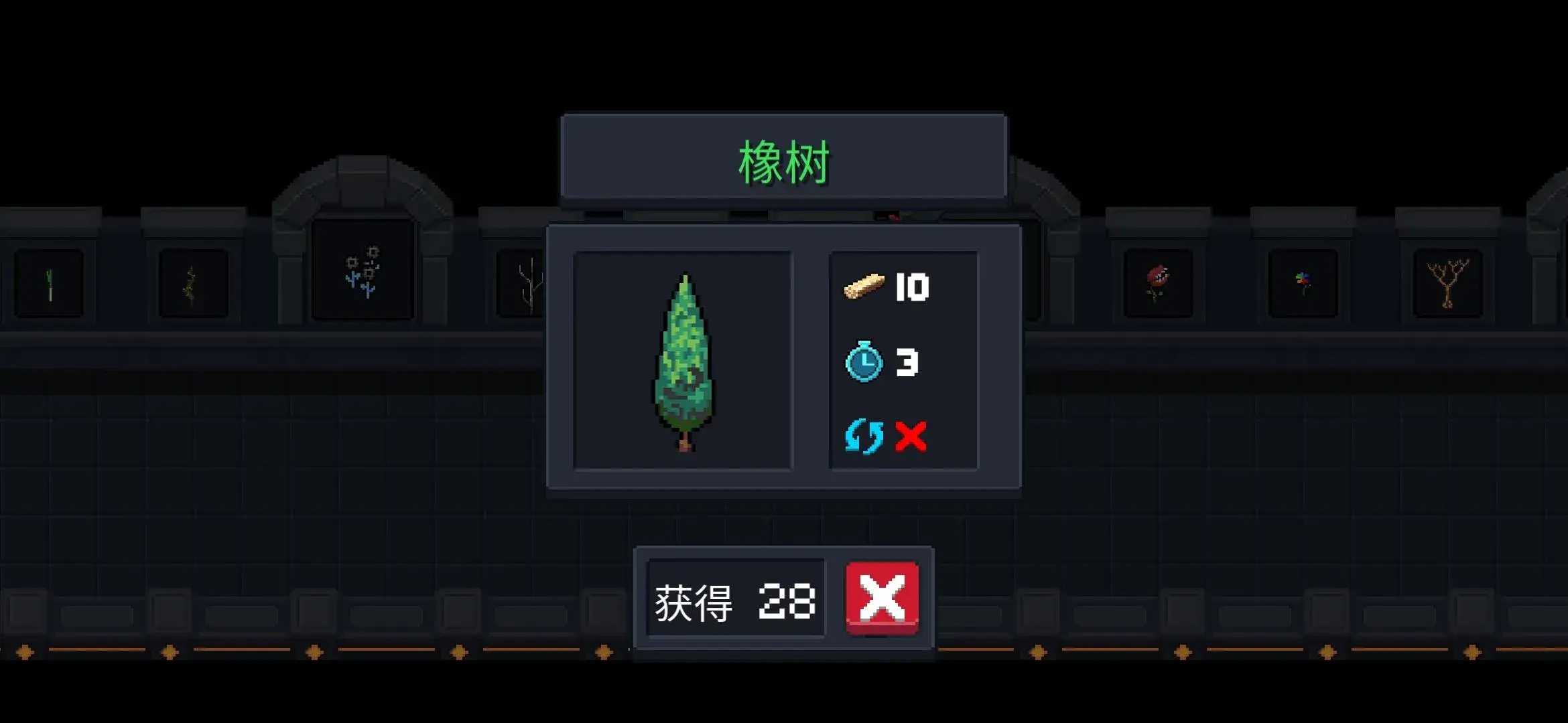 19.“橡树” 三天成熟,成熟后获得“10个木板”,可收获一次。 不可循环使用