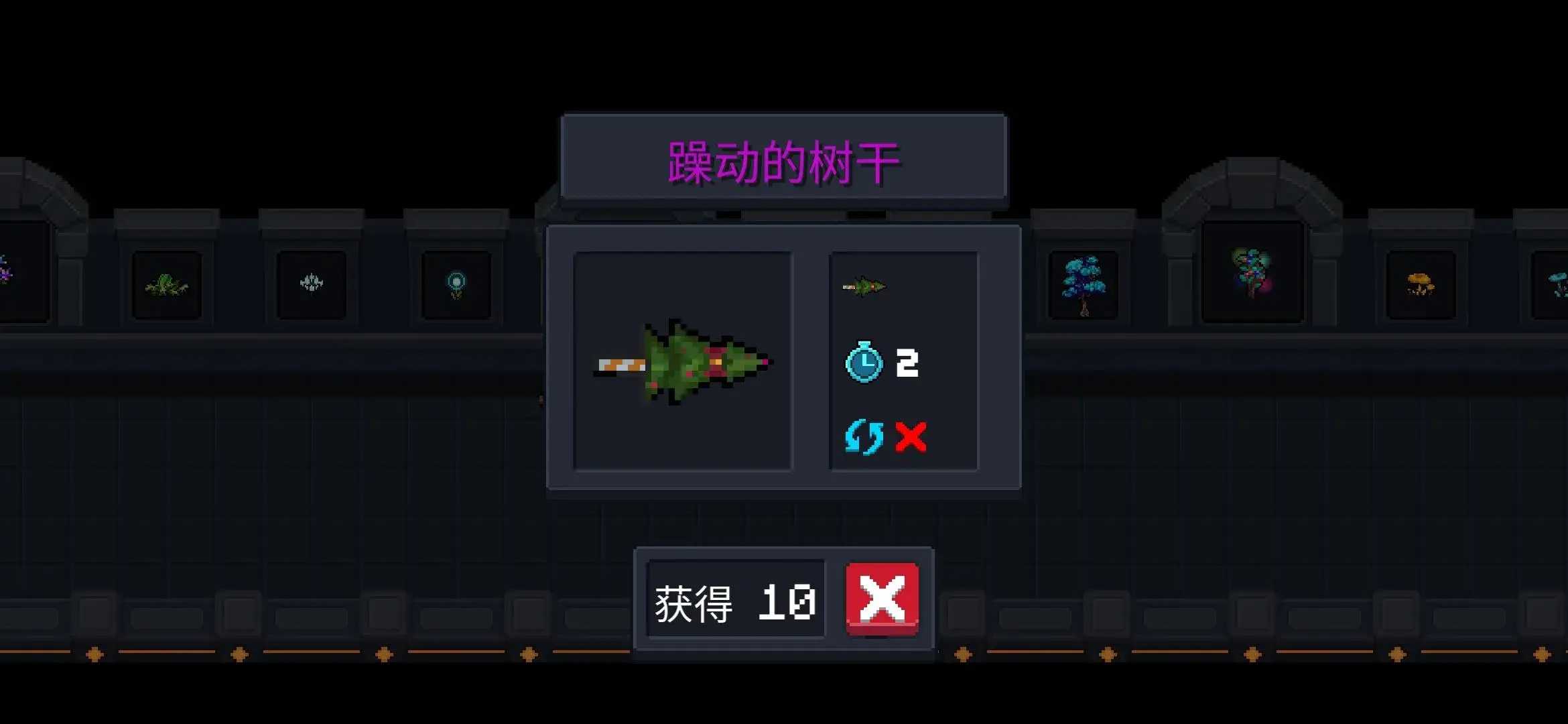 25.“躁动的树干” 两天成熟,成熟后获得“红武‘躁动的树干’”,可收获一次。 不可循环使用