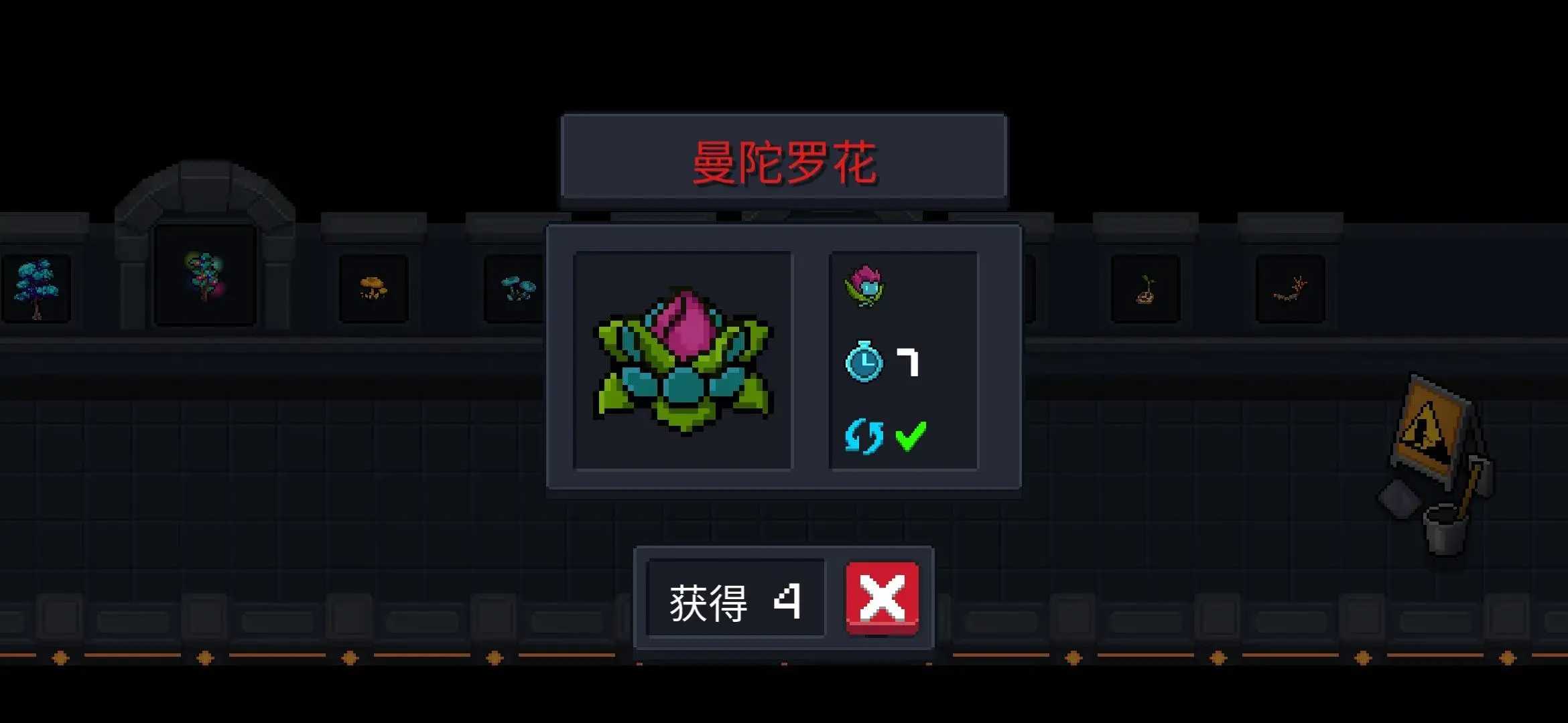 29.“曼陀罗花” 七天成熟,成熟后获得“随从曼陀罗”,每天收获一次。 可循环使用