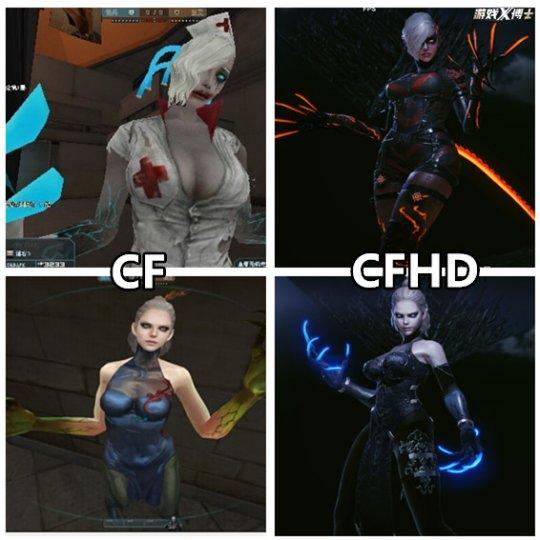 因此你可以看到,CFHD角色刻画整体向写实化看齐,原来CF里性感妖娆的女性角色统统不见了踪影,唯几登场的生化女角色都裹得严严实实,疯狂宝贝的护士装不翼而飞,妖姬从发型到服饰倒是还原到位。