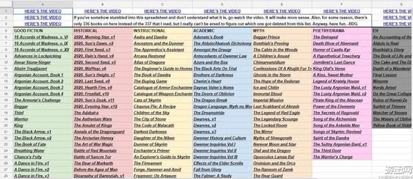 不得不钦佩这位玩家的耐心,通读了这么多书并将它们进行了细致的分类和排名。当然也不得不钦佩《上古卷轴5:天际》的强大,作为一部大型开放世界游戏竟然提供了这么丰富的文字内容供感兴趣的玩家阅读。