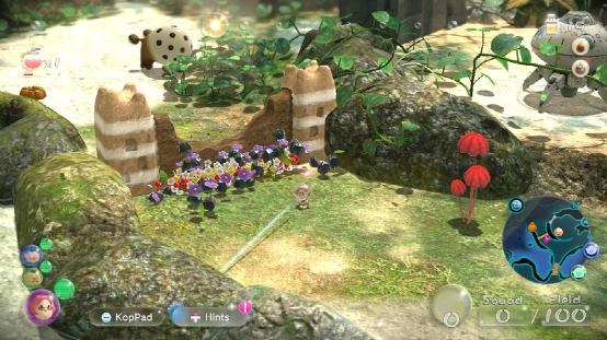 玩家操控主角,然后用主角控制皮克敏(就类似小兵单位)。说是“控制皮克敏”,其实操作就两种,一是将皮克敏丢出去,二是将皮克敏召唤回自己身边。被丢出的皮克敏会在电脑的判断下,解读玩家想要进行的操作。