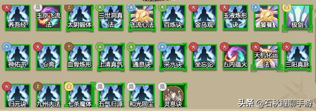 下图是一个结丹前小人应该学的所有功法,仅供参考。