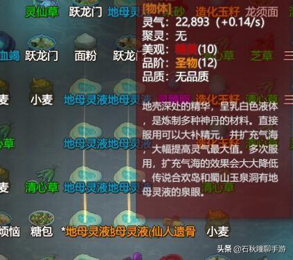 最后吃圣品地母灵液x2,注意是幽淬到12品的圣品,可大幅提升灵力上限,吃之前注意用吸星掌将灵力吸干以免爆体而亡。