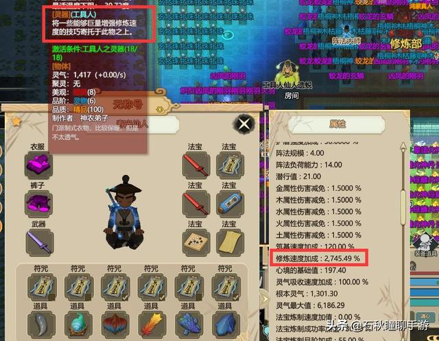 (在0.9623的更新中,所有可增加灵气的功法寄托均被无效化,所以憋气套装只寄托修炼速度的就行了)