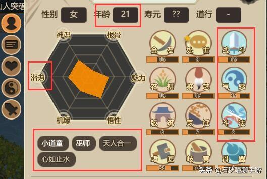 首先是挑选小人,游戏后期小人的五维已经变得不是那么重要了,真正重要的,反而是小人自带的词条,战斗、气感、斗法,年龄与潜力这些。
