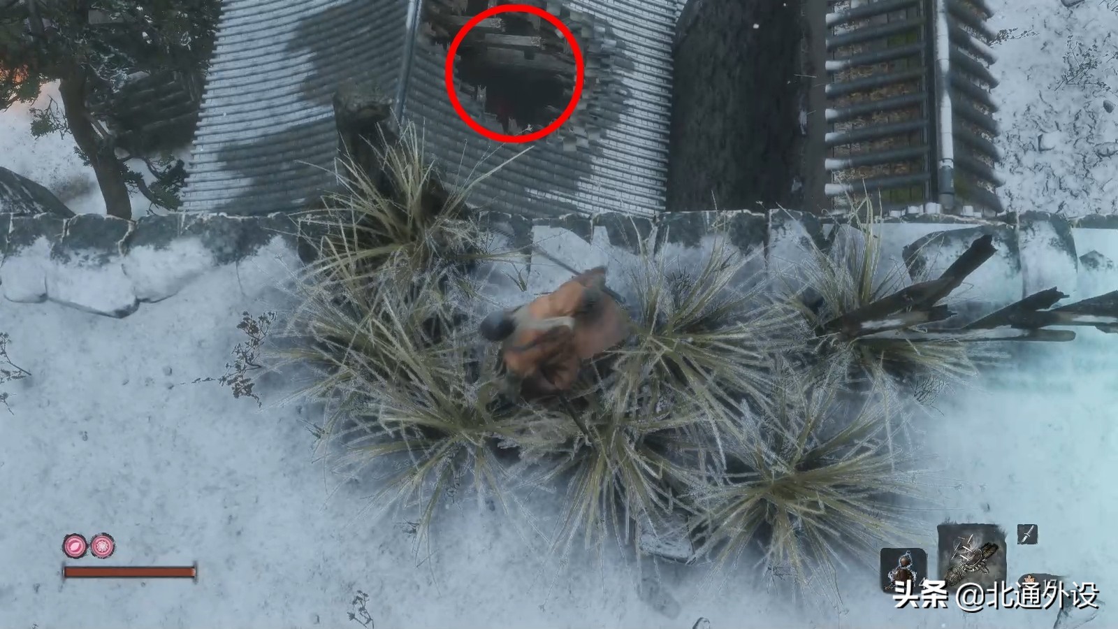 4.先来到鬼佛左侧这堆杂草处。