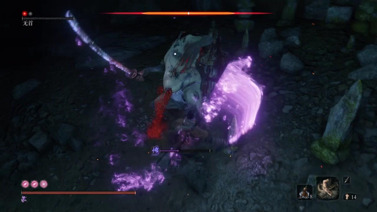 水下无首有两个,这两个降临分别是哼将降临、夜叉降临,夜叉降临可是个好东西对于一些高玩来说夜叉是不可多得的好东西,虽然夜叉让自己的血量减半,但是伤害很高。水下无首和陆地无首有着很大的区别,水下无首只有一管血,因为在水下不能使用神之飞雪,所以水下无首就只有一管血,举一个夜叉降临无首,这个无首有点特别,这个无首旁边有一个幻影,所以打这个无首需要吃一个月隐糖,然后再到真身旁边打,当然打这个还是很容易的,在他旁边砍,出危就游到后方,抬手就弹反,同样也需要神之飞雪。两个水下无首位置源之宫、苇名主城前往白色神社的桥下。