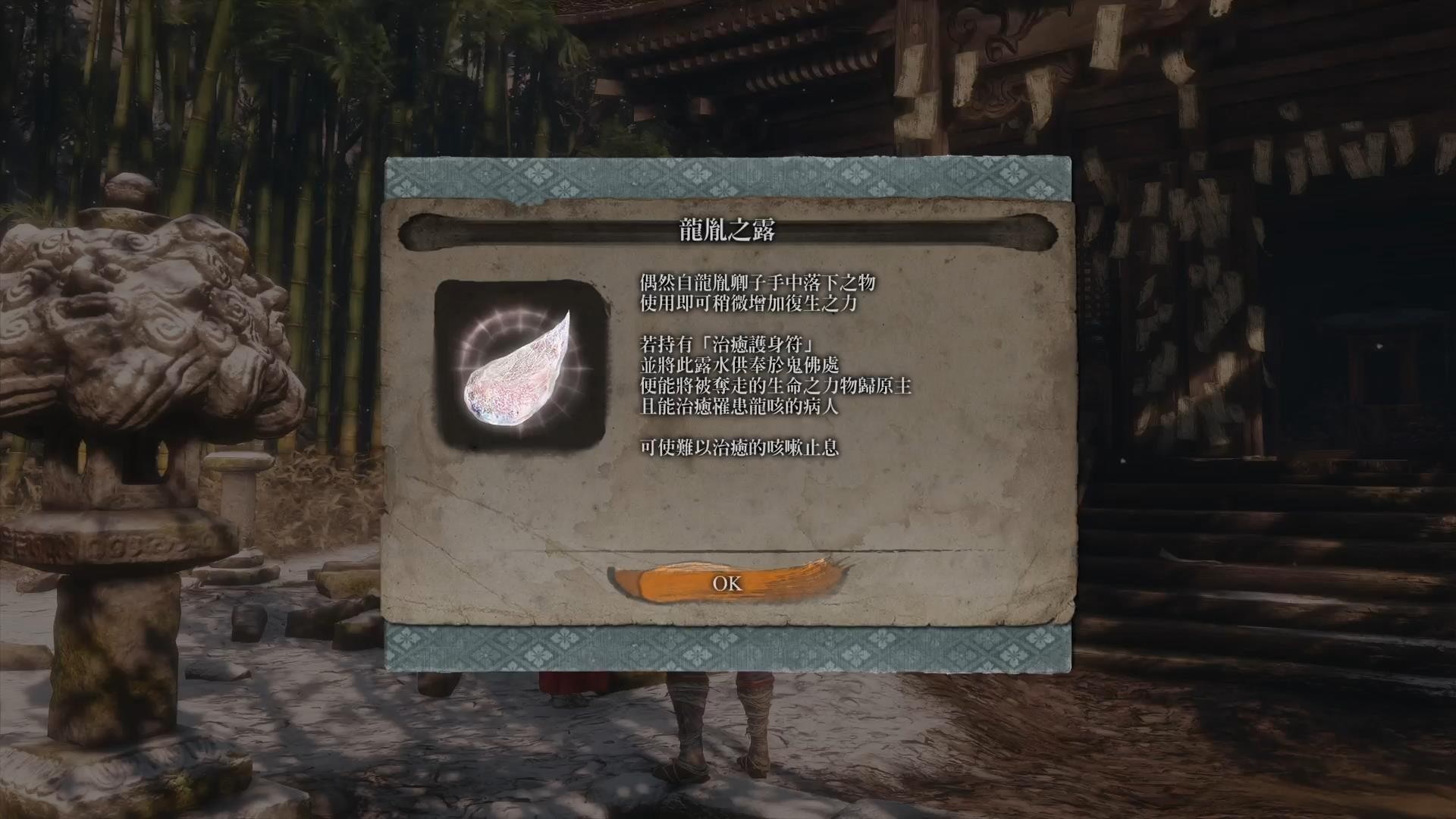 2.如果之后还有NPC患上龙咳,可以跟其他物品比较丰富的NPC购买龙胤之露(例:天狗 NPC右边的商人)。