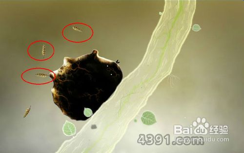 第三根,得花点时间了,因为掉到树叶里藏住了,当把它弄出来的时候,结果又掉到树坑里的蜗牛壳里了,可以看图上的步骤把它取出来。