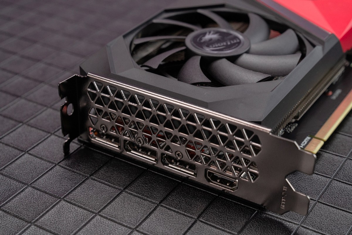 RTX 3050同样没有公版产品,所以本次测试我们使用的GPU是来自七彩虹的战斧GeForce RTX 3050 DUO 8G。七彩虹战斧系列GPU为追求极致性价比的玩家打造,它采用了七彩虹战斧系列的家族化风格设计,经典的红黑色外观搭配菱形切面设计,展现出十足的科技感。
