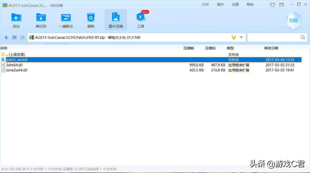 下载汉化补丁之后解压补丁,如果双击无法打开,请下载一个解压软件。
