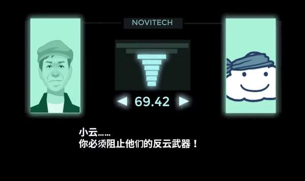 比如在其中一关,进入游戏后会进入一段剧情,说现在有人正在研制反白云武器,需要小白云潜伏到基地当中将武器销毁。而在这一关里小白云将会戴上头巾,用暗杀(潜行到敌人身后浇湿敌人)的潜入进去。