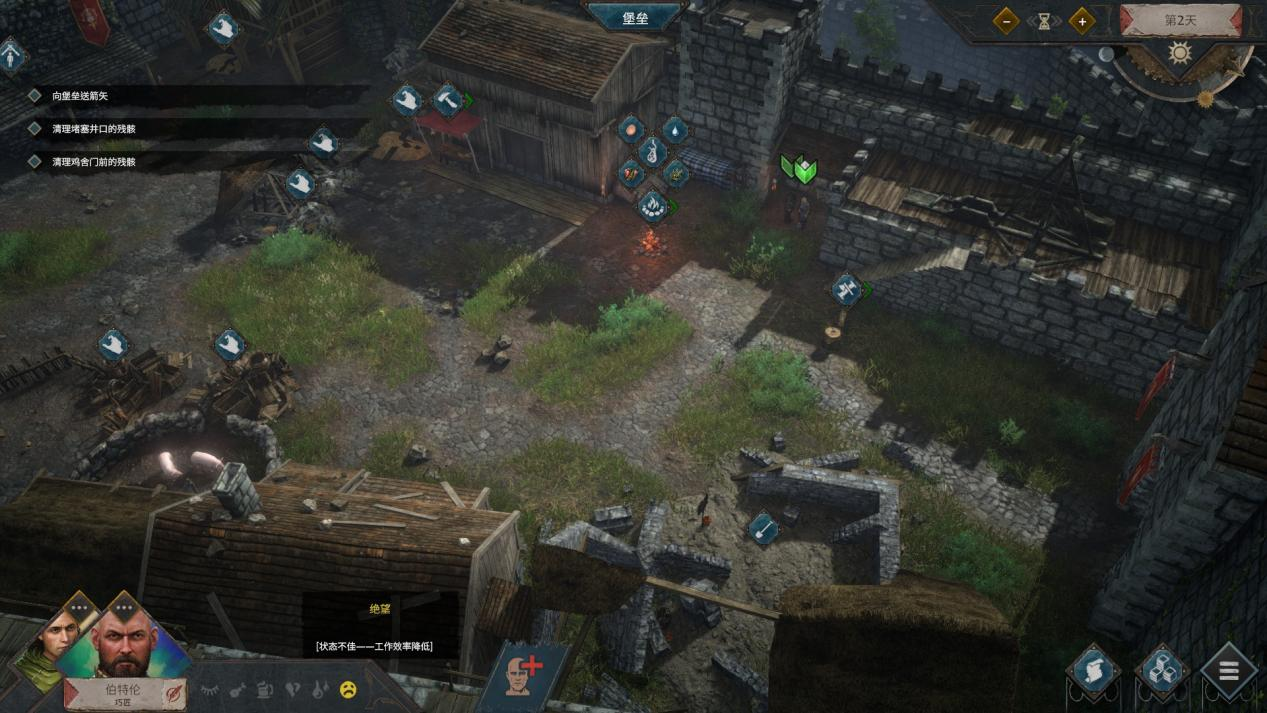 《征服的荣耀:围城》最大的特色,还是在于游戏强制分为“白天”和“夜晚”两个阶段,且都有时间限制。之前提到过,白天夜晚分工明确,白天干活晚上拾荒。因为时间有限,白天干不完的活,只能留到明天才能完成。夜晚拾荒也受时间影响,因此,尽可能多地在有限时间内收集到更多材料,成为玩家应当首要考虑的问题。